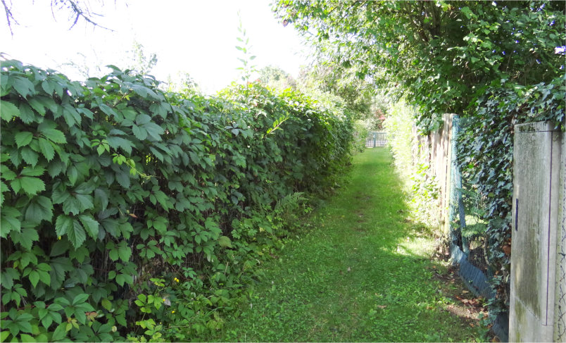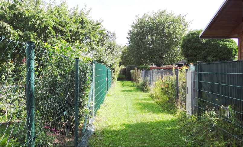 Einen wichtigen Hinweis möchten wir hier noch geben. Leider verfügt der Garten über keine eigene Zufahrt. Vom Eingang an der Zufahrtstraße sind es ca. 30 m bis zum Garteneingang.